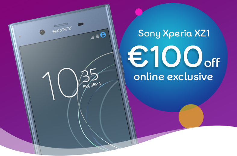 Get €100 off the Sony Xperia XZ1 on any of our fantastic eir mobile bill pay plans.
